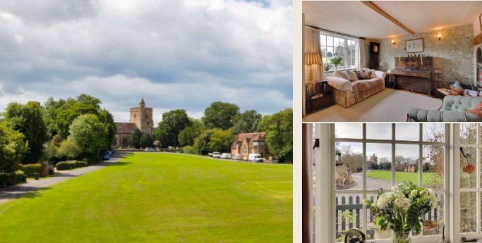 Upstairs, the cottage comfortably sleeps up to eight guests, with bedrooms spread across multiple floors to give everyone a sense of privacy. The top-floor room is especially memorable, with its generous proportions and elevated views across the village green to the historic church beyond.